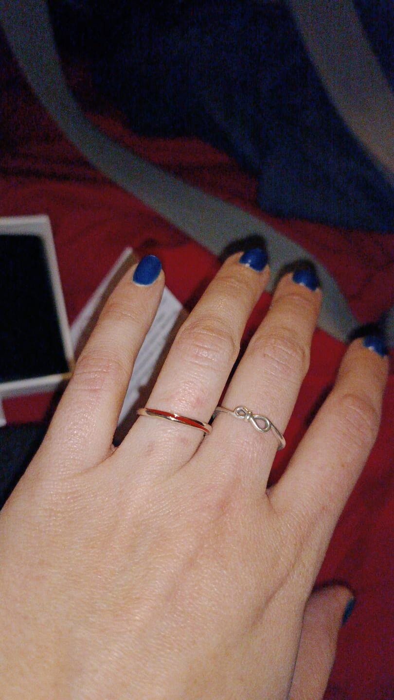 La bague est ouverte, ainsi vous pouvez la resserrer ou la desserrer en pressant sur le corps de la bague. Attention à ne pas presser sur les noms car ils sont moins résistants que le corps de la bague.